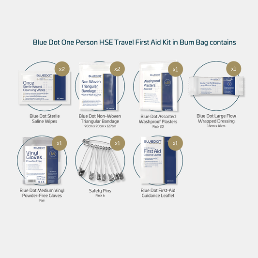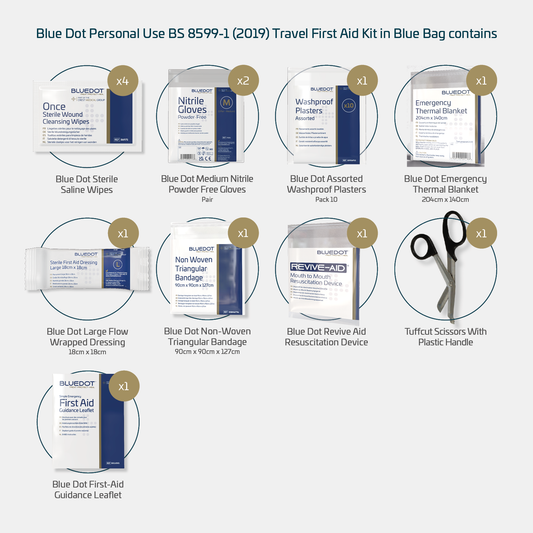 Blue Dot Personal Use BS 8599-1 (2019) Travel First Aid Kit in Blue Bag